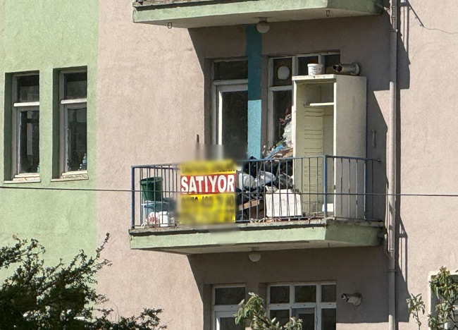 Hijyen şartlarının tamamen ortadan kalktığı gerekçesiyle uzun süre konuşulan daire, aradan geçen sürenin ardından bu kez satış ilanlarıyla gündeme geldi. Dairenin pencerelerine asılan emlakçı ilanları dikkat çekerken, mahalle sakinleri evi kimin satın alacağını merak ettiklerini ifade etti.