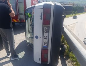 KARABÜK’te bariyerlere çarparak yan devrilen otomobilin 72 yaşındaki sürücüsü, çevredeki vatandaşların yardımıyla araçtan çıkarıldı.