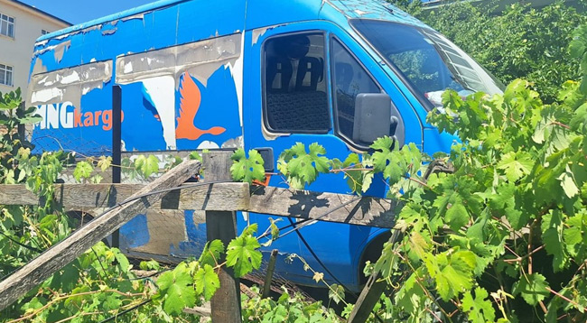 EL FRENİ ÇEKİLMEYİ UNUTULAN PANELVAN BAHÇEYE GİRDİ:2 YARALI