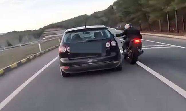 OTOMOBİLİN AYNASINI KIRAN MOTOSİKLETLİ KAMERADA