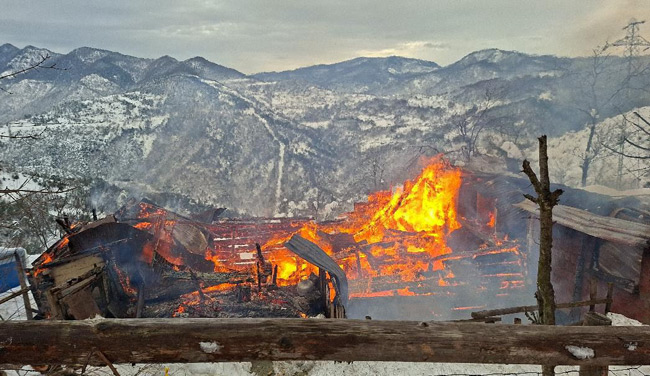 AHŞAP EV ALEVLERE TESLİM OLDU