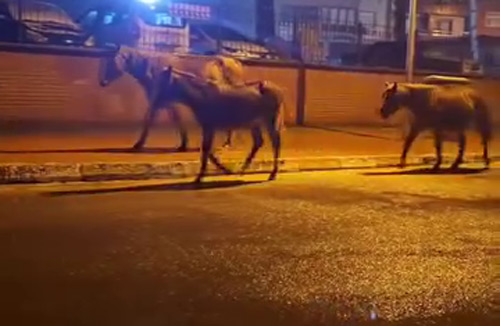 AÇ KALAN YILKI ATLARI ŞEHİR MERKEZİNE İNDİ