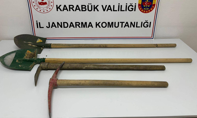 Yenice Cumhuriyet Savcılığı koordinesinde, Karabük İl Jandarma Komutanlığı ekipleri tarafından 2 Kasım 2025 tarihinde gerçekleştirilen operasyonda, izinsiz kazı yaptığı tespit edilen 3 şüpheli, 1 kazma, 1 çapa ve 2 kürek ile birlikte yakalandı. Gözaltına alınan şüpheliler, jandarmadaki işlemlerinin ardından adliyeye sevk edildi.