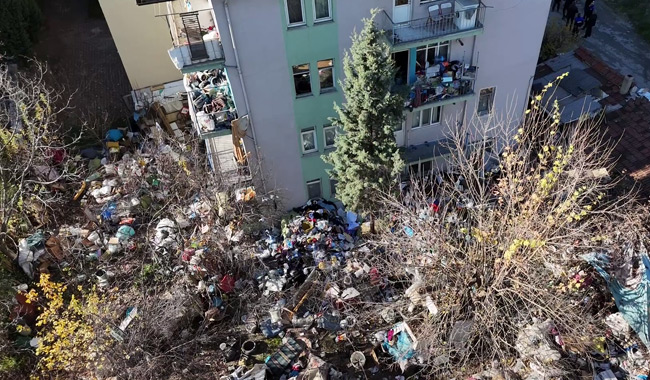 Ekipler, eve girdiklerinde salon, yatak odası, mutfak, banyo ve balkon dahil tüm alanların çöplerle dolu olduğunu tespit etti. Odalarda biriken çöplerin kullanım alanlarını tamamen kapladığı, hijyen şartlarının ortadan kalktığı belirlendi. Evin bahçesi ve bina çevresinin de çöplerle kaplı olduğu görüldü. Temizlik çalışmaları kapsamında ev ve bahçeden yaklaşık 10 kamyon çöp çıkarılırken, bölgedeki görüntüler dron ile kaydedildi.
