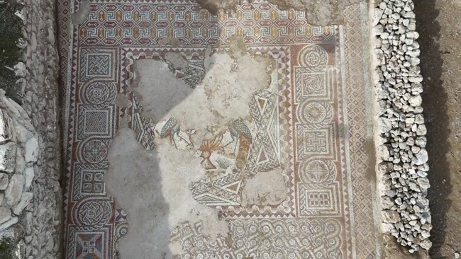 Mozaiklerde ağırlıklı olarak geometrik desenlerin yer aldığını belirten Çelikbaş, özellikle merkeze işlenen iki tavus kuşu sahnesinin dikkat çektiğini söyledi:“İki tavus kuşu antitetik duruşla, ortalarındaki su kabından su içer şekilde betimlenmiş. Mozaiğin yaklaşık yüzde 80’i sağlam durumda. Bölge için mozaik repertuarını genişletecek nitelikte benzersiz buluntular.”