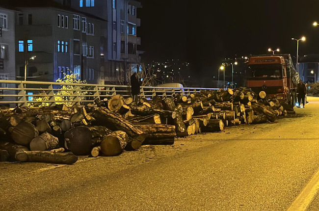 KARABÜK’te seyir halindeyken damperi aniden açılan kamyondaki odunlar kara yoluna döküldü. Olay sırasında arkadan başka bir aracın gelmemesi olası bir faciayı önledi.