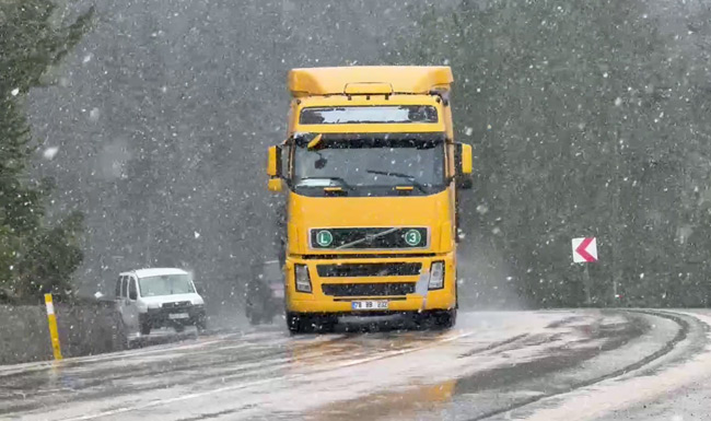 Karabük-Bartın kara yolunun 1030 rakımlı Ahmetusta Geçidi’nde de kar yağışı ve yoğun sis etkili oldu. Hazırlıksız yakalanan sürücüler, nisan ayında karla karşılaşmanın şaşkınlığını yaşadı. Bölgedeki kar yağışı ve sis, dron kameralarıyla kaydedildi.