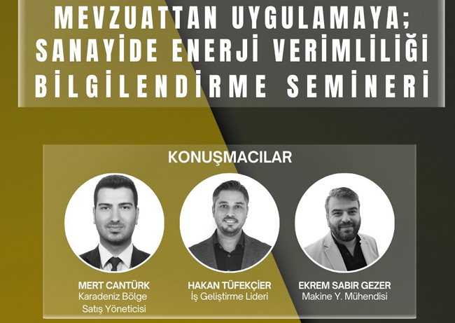 Seminerde Eksage Mühendislik’ten Makine Yüksek Mühendisi Ekrem Sabır Gezer, enerjide yasal yükümlülükler, Endüstriyel Emisyonların Yönetimi Yönetmeliği, Mevcut En İyi Teknikler (MET) tebliğleri ile sanayide enerji yönetimi uygulamaları hakkında sunum yapacak.