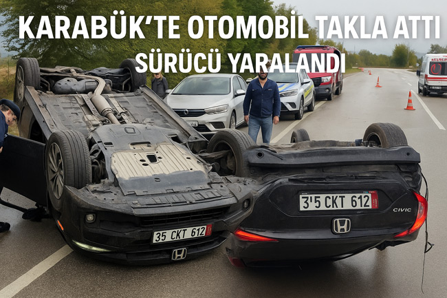 Kaza, saat: 15.20 sıralarında D-755 kara yolu Alıcılar Beton mevkisinde meydana geldi. Karabük yönüne giden K.Ç. idaresindeki 35 CKT 612 plakalı otomobil, sürücüsünün direksiyon hâkimiyetini kaybetmesi sonucu refüjdeki trafik levhasına çarptıktan sonra takla attı. Ters duran otomobilde K.Ç., yaralandı. K.Ç., ihbar üzerine gelen sağlık ekiplerince Karabük Eğitim ve Araştırma Hastanesine kaldırıldı. Yaralının hayati tehlikesinin bulunmadığı öğrenildi.