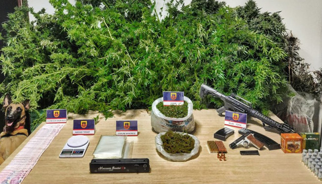 İl Jandarma Komutanlığı ekipleri, uyuşturucuyla mücadele kapsamında 3 şüphelinin bulunduğu ormanlık alandaki çiftliğe operasyon düzenledi. Dedektör köpeğinde kullanıldığı aramada, 56 kök skunk bitkisi, 4.63 gram kubar esrar, 2 gram kenevir tohumu, vakum makinası, 119 vakum ambalaj poşeti, hassas terazi, 3 eldiven, ruhsatsız tabanca, ruhsatsız av tüfeği, 107 fişek, 4 şarjör, 39 av tüfeği kartuşu, suçtan elde edildiği değerlendirilen 27 bin 670 lira ele geçirildi. 3 cep telefonuna ise incelenmek üzere el konuldu. Gözaltına alınan 3 şüpheli işlemlerinin ardından adliyeye sevk edildi. Şüpheliler, çıkarıldıkları mahkemece tutuklandı.