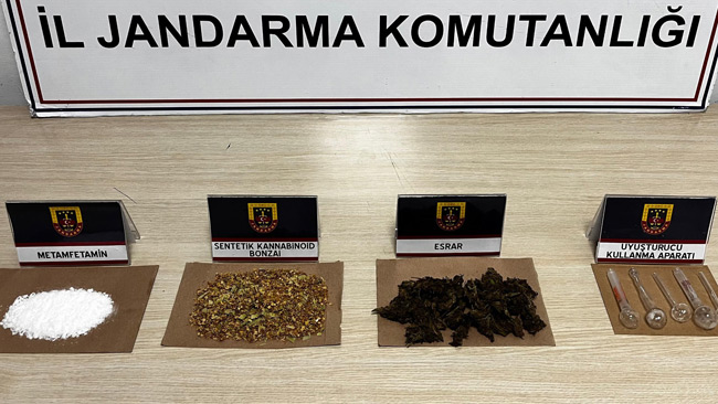 Aramalarda 61,4 gram metamfetamin, 80,5 gram esrar, 34,8 gram sentetik kannabinoid ve 5 adet uyuşturucu kullanma aparatı ele geçirildi. Ayrıca 3 cep telefonuna da incelenmek üzere el konuldu.